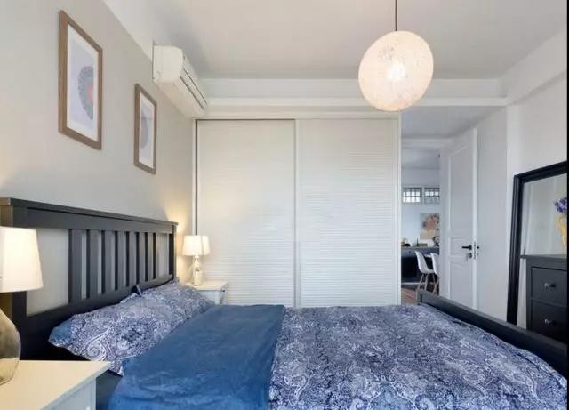 主臥,藍紫色碎花床品營造了良好的用餐氛圍,仿若置身紫羅蘭的夢幻花園。