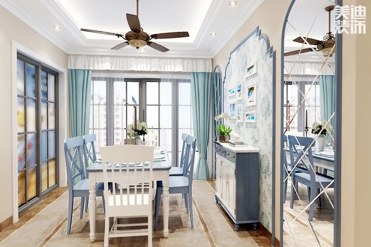 通過一系列開放性和通透性的建筑裝飾語言來表達地中海裝修風(fēng)格的自由精神內(nèi)涵。通過取材天然的材料方案,來體現(xiàn)向往自然,親近自然感受自然的生活情趣,進而體現(xiàn)地中海風(fēng)格的自然思想內(nèi)涵;