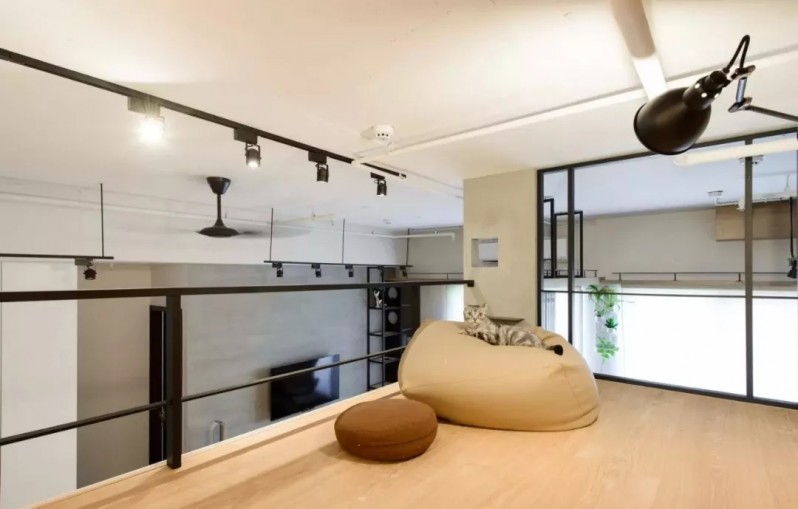 為了能夠有更多的活動空間,設(shè)計師對房屋進(jìn)行了改造,在廚房的上方增加了一個簡易的書房,看起來個性時尚。