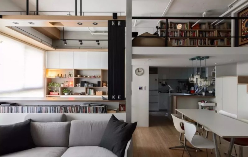 這套房子總共70平米,戶主為了能夠有更多的活動空間,對房屋進(jìn)行了復(fù)試改造,在廚房的上方增加了一個簡易的書房,看起來個性時尚。