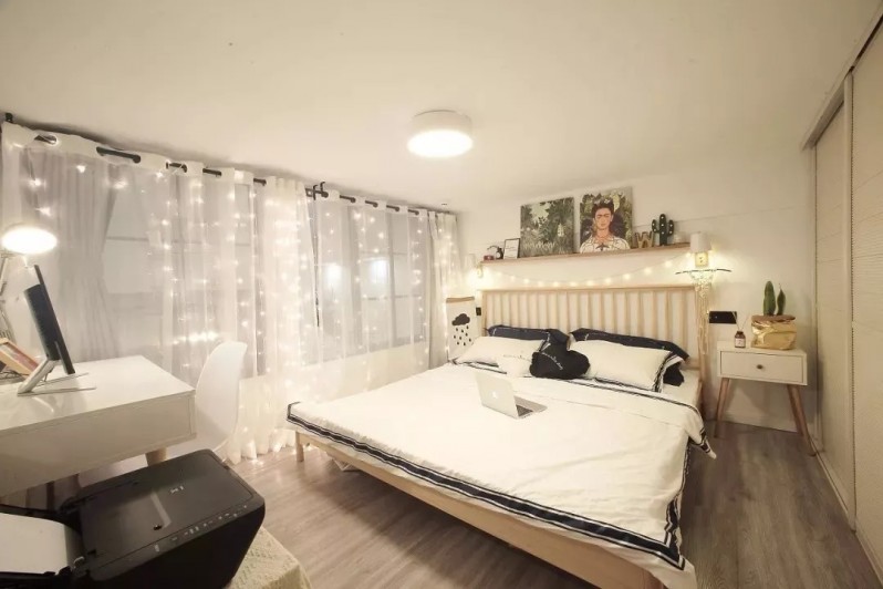 以白色調(diào)為主的北歐風(fēng)設(shè)計,白色難免讓人覺得單調(diào),設(shè)計師在地面做了花磚設(shè)計,豐富了空間,顯得清新文藝。