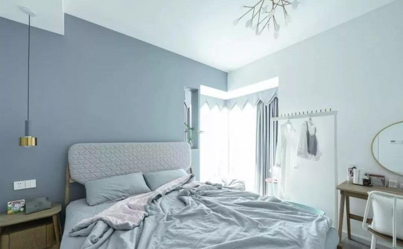 私人空間當然也要使用業(yè)主最愛的藍色,金色的吊燈成燈最亮眼的點綴。帶個轉(zhuǎn)角小陽臺,使臥室更加溫馨愜意了。女主人自稱是空巢少女,有時候生活的節(jié)制,有時候又生活的隨性,精致的梳妝臺讓她總不會忘記做一個精致的佩奇女孩。