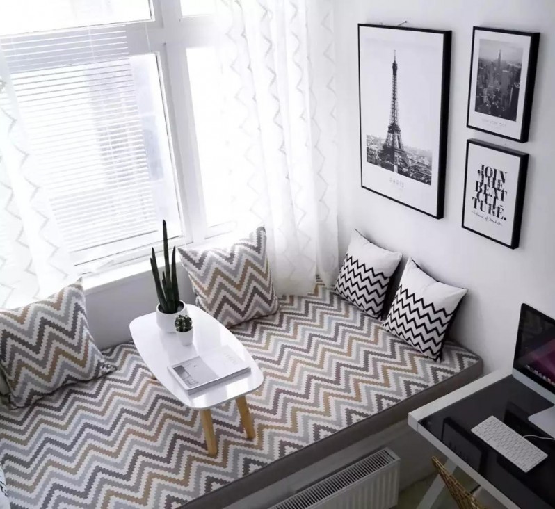 飄窗改休閑區(qū),嘗試將飄窗改成休閑區(qū)。在飄窗做個(gè)小矮柜,放上坐墊,再配幾個(gè)抱枕靠墊,面積足夠大的,還可以放上茶桌,悠閑又自在