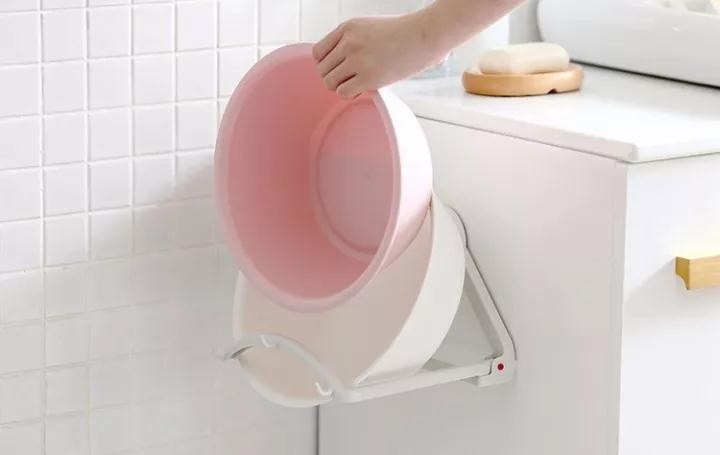 如果地上空間不多的話,還可以利用墻面空間,馬爸爸網(wǎng)站上有很多款式的臉盆掛鉤,往墻上粘或者吸盤(pán)。而且很多掛鉤也可以同時(shí)收納N個(gè)臉盆,也是可以盆套盆。墻上或者浴室柜的側(cè)面等,哪里有空,或者哪里不礙事就掛哪里。