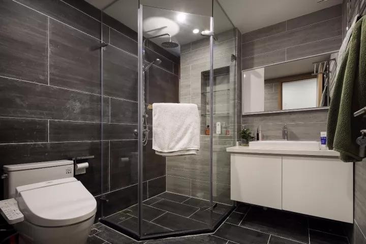 第一,做個(gè)大型的浴室柜子,把臉盆放柜子里面,浴室的東西都有地方放不說(shuō),小物件都能"藏"起來(lái),就顯得干凈清爽多了~