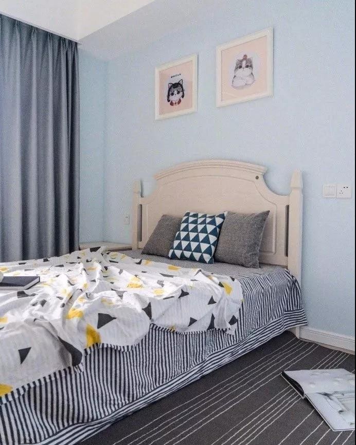 次臥是兒童房,鋪設(shè)了地毯腳感更舒適,加上掛畫的點(diǎn)綴更有童真童趣。
