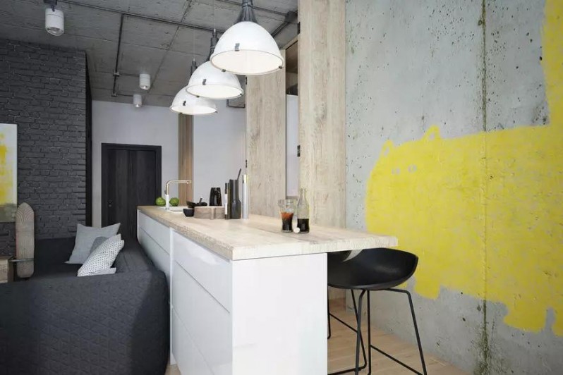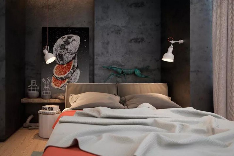 這是一個二居室項目,居住者為一對夫婦和他們的10歲兒子。業(yè)主希望保留室內(nèi)的水泥天花板及墻面,盡可能省成本但又不至于看起來粗糙。
