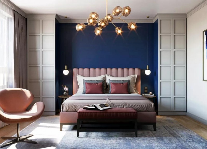 主臥室可以看到藍(lán)色和粉色的繼續(xù)應(yīng)用,這讓整個家里有一種內(nèi)在的一體感。