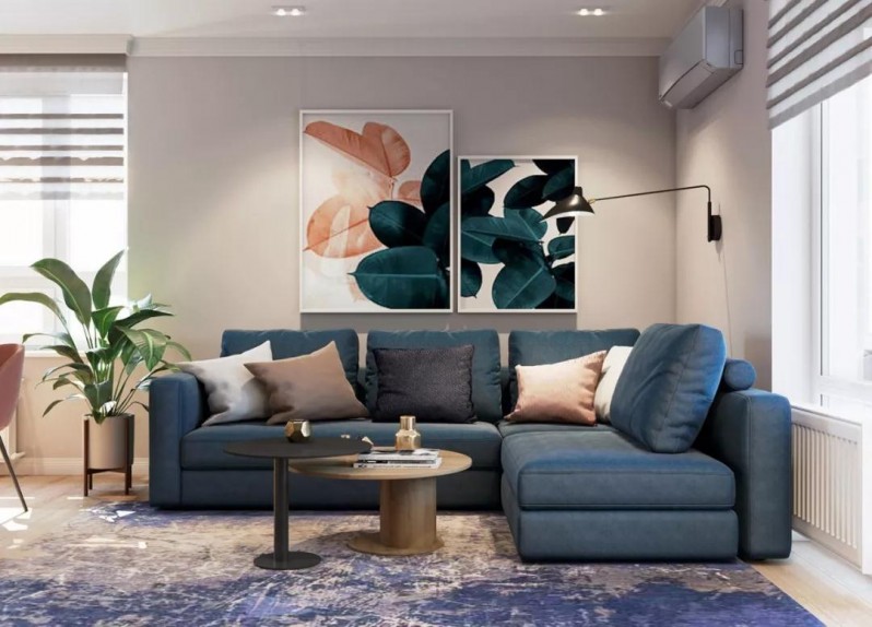 這是一套上個世紀(jì)中葉現(xiàn)代風(fēng)格(Mid-Century Modern)的83平方米二居室公寓,擁有合理的功能區(qū)布局和讓人眼前一亮的配色。