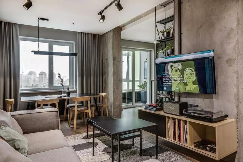 這套86平方米二居室公寓,業(yè)主是個(gè)年輕人,喜歡電影、漫畫等,是一位影音娛樂愛好者,裝修方面也著實(shí)為其愛好充分考慮。