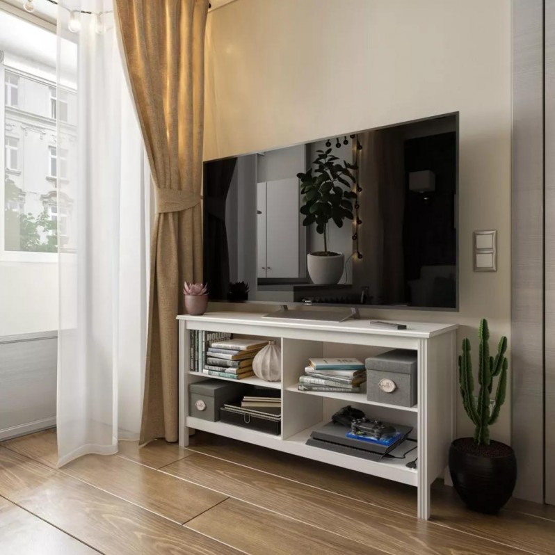客廳空間很小,只放了一張雙人位沙發(fā),一個(gè)小茶幾,電視機(jī)也只是放在小巧的擱物桌上。