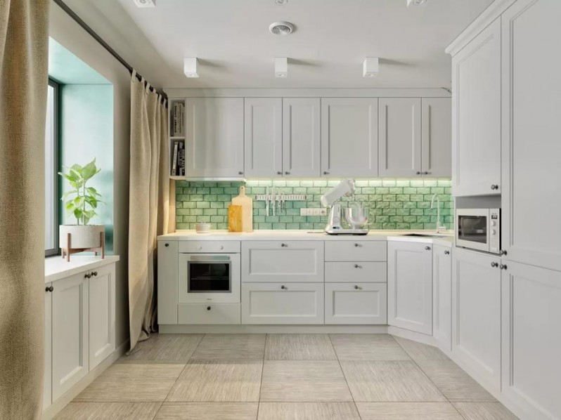 廚房和餐廳在一個(gè)獨(dú)立的空間里,與客廳和其他功能區(qū)完全隔開(kāi);這個(gè)區(qū)域擁有大窗戶(hù),能保證足夠的自然光,可以放心進(jìn)行烹飪,不怕油煙問(wèn)題。