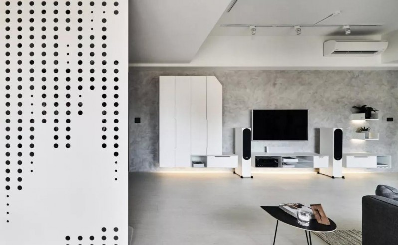 入門玄關(guān)處做了一塊白色的洞洞鐵板,不要以為只是裝飾之用,它還可以用來掛自行車,節(jié)省了很多空間。