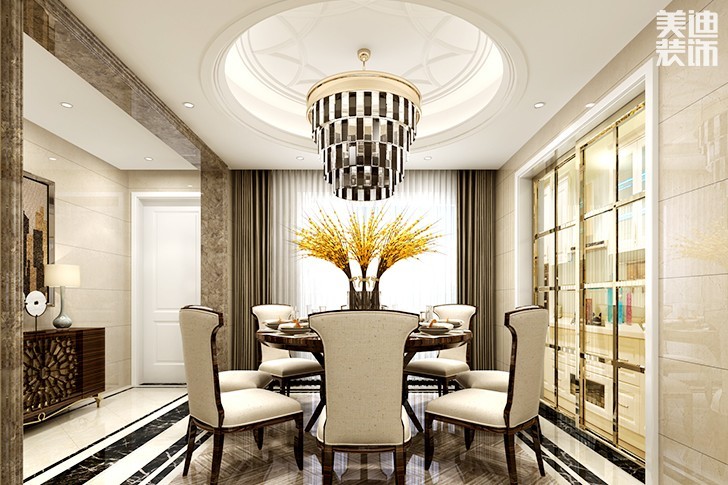 室內(nèi)設(shè)計(jì)采用西式的羅馬柱或裝飾性壁爐造型營(yíng)造出華貴的古典氣氛,并可以茶色鏡面拉伸空間的縱深感。
