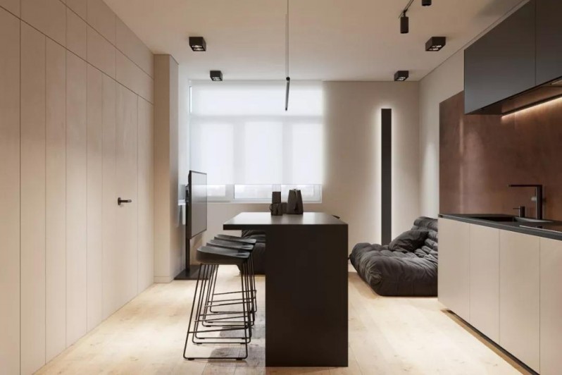這是一個(gè)44平方米的一居室項(xiàng)目,戶型方正,功能區(qū)布局科學(xué),簡(jiǎn)約但偏成熟穩(wěn)重的室內(nèi)裝飾非常耐看。