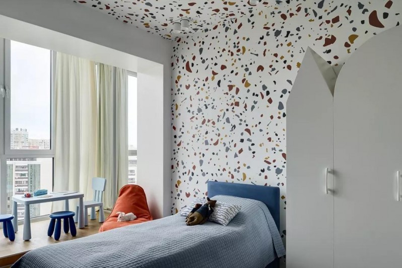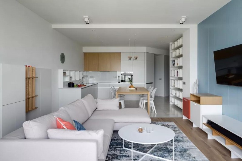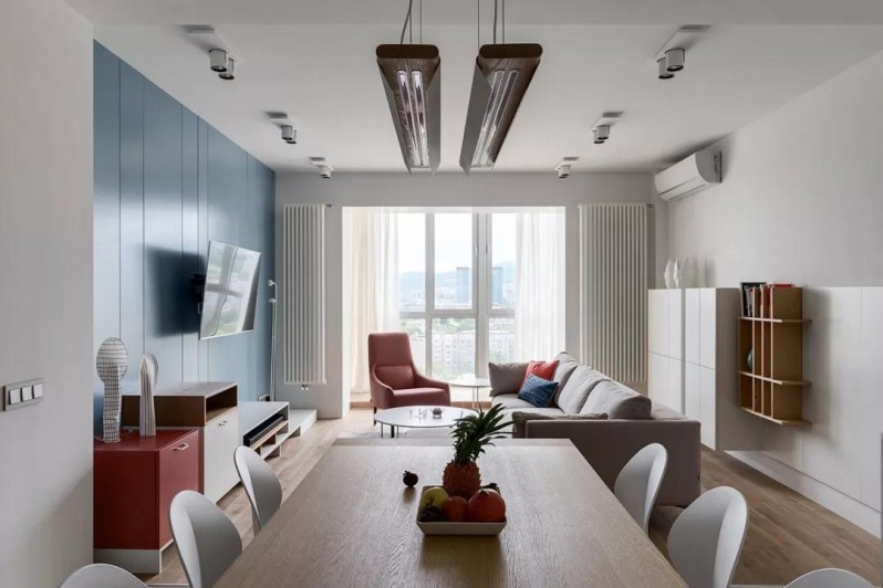 這是一套98平方米的二居室項(xiàng)目,為一對(duì)年輕夫婦和他們的小孩子而設(shè)計(jì)。房子的戶型不是很方正,但設(shè)計(jì)師利用了獨(dú)特的戶型,盡可能保持室內(nèi)明亮、通風(fēng),還借助色彩元素營(yíng)造了歡快的室內(nèi)氛圍。