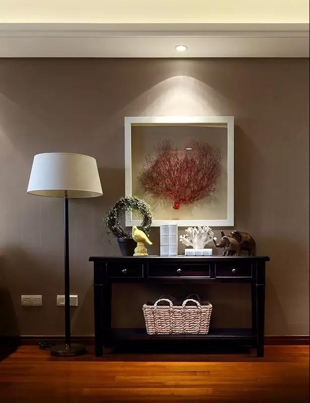 愛美式的太太,與喜靜的先生結(jié)合,于是就有了這樣的家:美式風(fēng)格中常見的雞蛋殼青墻面,以吊燈、墻畫、沙發(fā)靠墊等系列物品等作為縱向的軟裝搭配,形成家的標(biāo)志。
