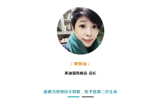 在大家印象中,她工作雷厲風(fēng)行,對(duì)待團(tuán)隊(duì)成員卻和藹可親,簡(jiǎn)單優(yōu)雅。她會(huì)花時(shí)間與大家分享工作方法,幫助大家進(jìn)步成長(zhǎng)。她不僅將門(mén)店經(jīng)營(yíng)得風(fēng)生水起,同時(shí)贏得了廣大顧客的絕佳口碑!本期《美迪人物》我們采訪到的是美迪裝飾南店店長(zhǎng)—譚雅麗。