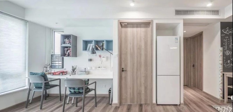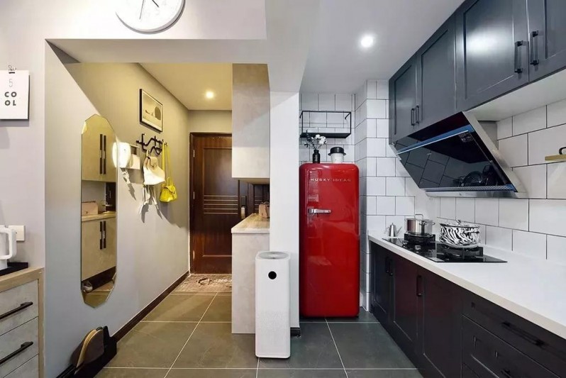 還有些人會(huì)把冰箱放在過(guò)道,這樣做的好處是不浪費(fèi)一絲一毫的空間。
