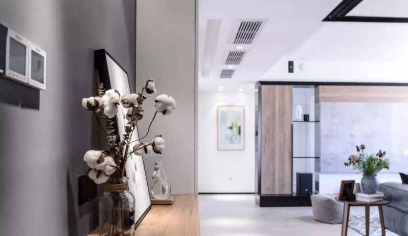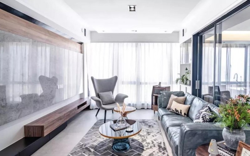 廚餐廳擴大后,客廳進深被壓縮,所以在過道足夠情況下,電視墻做了延伸,讓客廳空間顯得更大一些。