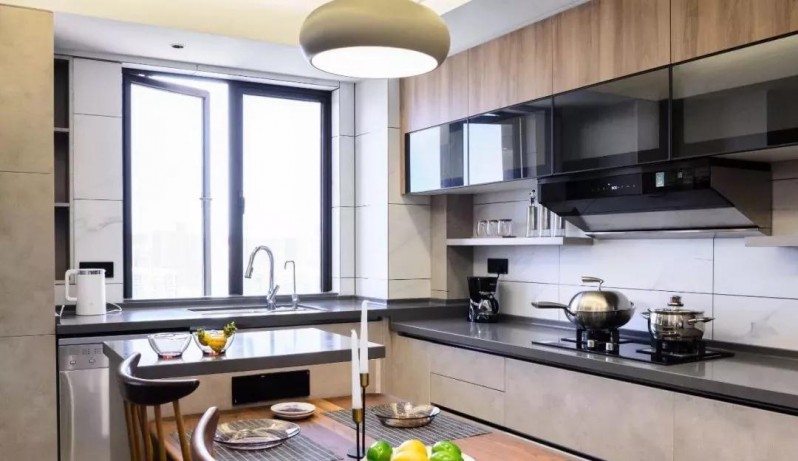 特意擠出來的島臺,小卻實用。島臺下面分別是抽屜和柜子,利用起來做收納。側(cè)邊安裝插座,還可利用起來方便做西式早餐。