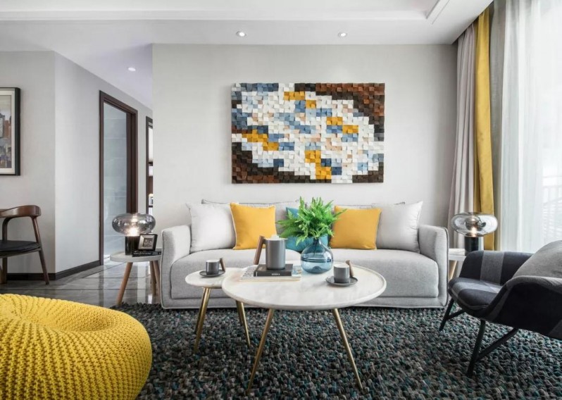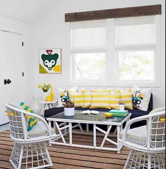 比如這個(gè)活力黃色,在一定程度上使眼睛和墻面更近,讓空間在視覺上縮小,所以在設(shè)計(jì)中并沒有使用太多,適當(dāng)選用跳躍的色塊,讓空間更有層次感。