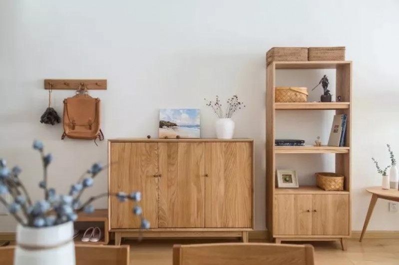 一進(jìn)門,玄關(guān)處的壁掛、成品鞋柜、換鞋凳、儲物架以經(jīng)典原木色呈現(xiàn),整體融為一體,都給人以排列設(shè)計恰到好處的感覺,能夠給家人和客人帶來自然溫馨的氛圍,感受到家的溫暖。