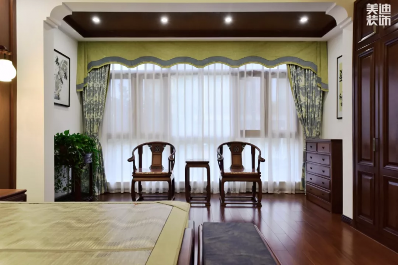 明式家具也在臥室中充分綻放出它的魅力,原木色家具配上亮色窗簾和綠植,空間沉穩(wěn)中又不失靈氣,更彰顯出原木色的高貴與優(yōu)雅。