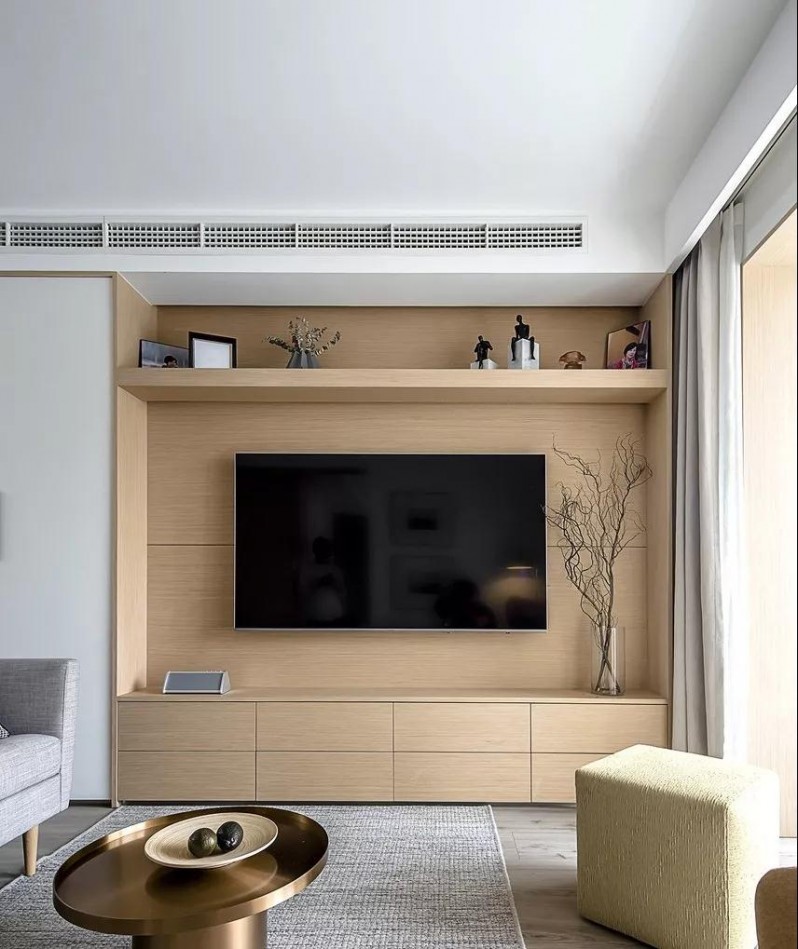 如果擔(dān)心擠得慌,可以借鑒下面這幾款,多給電視機四周留白,看著就敞亮多了。