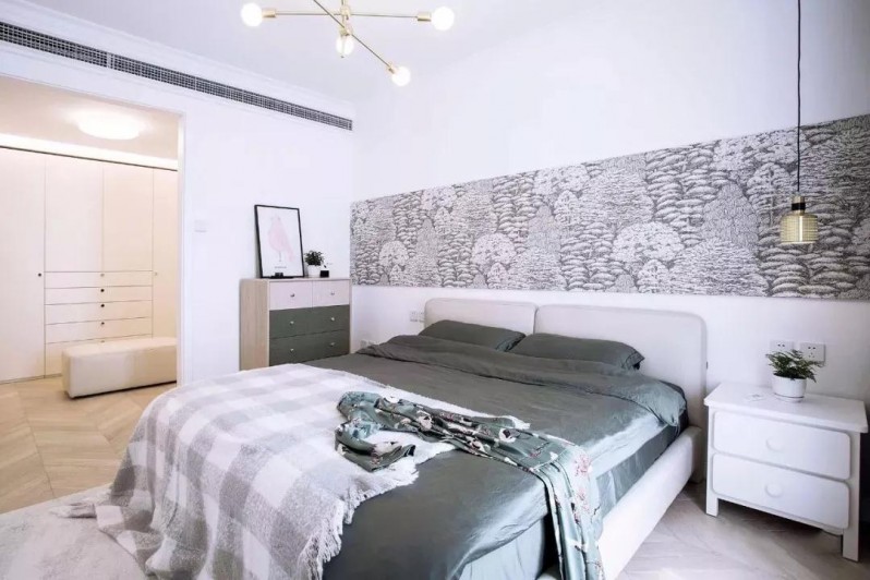 臥室的整體設計在簡潔上多了份柔美,綠色讓人安寧自然。