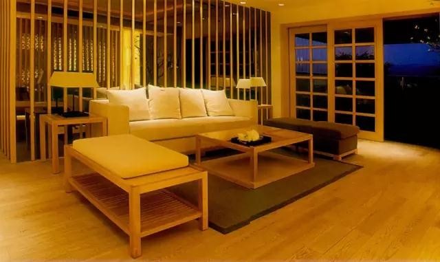 日式室內(nèi)裝修設(shè)計中色彩多偏重于原木色,以及竹、藤、麻和其他天然材料顏色,形成樸素的自然簡約風格。