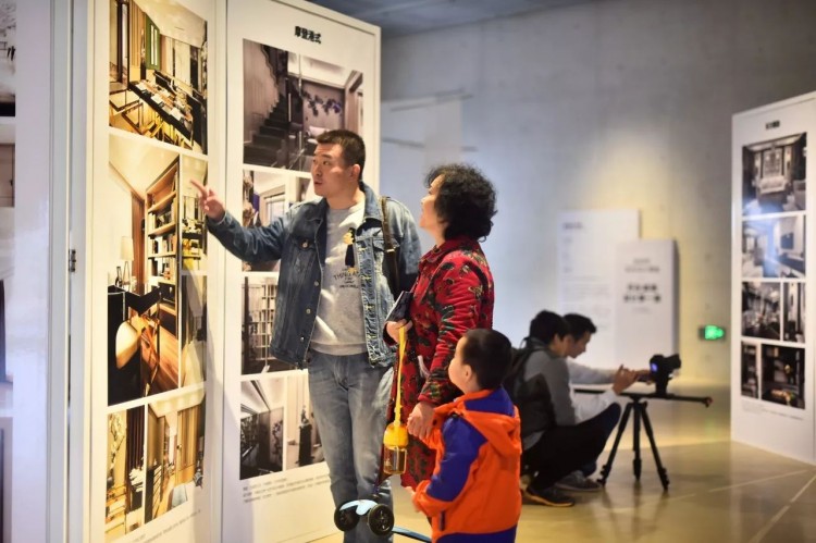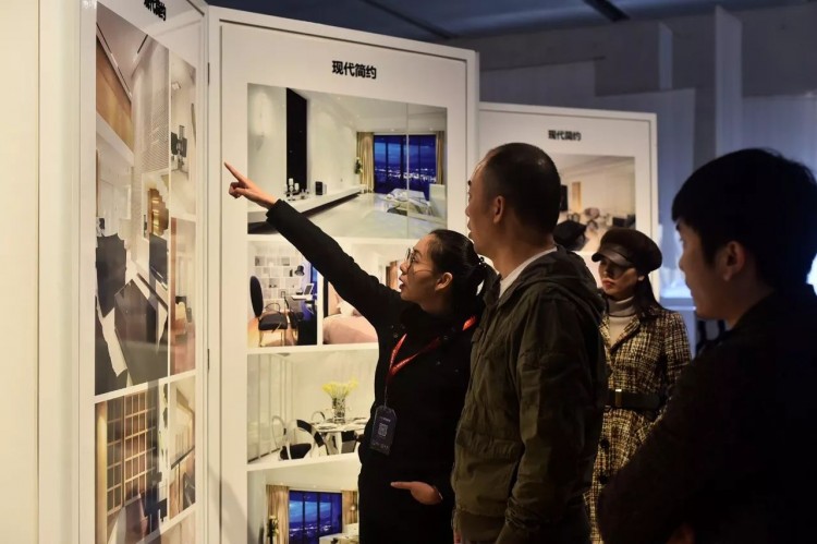 觀展者在工作人員帶領(lǐng)下參觀家居空間作品