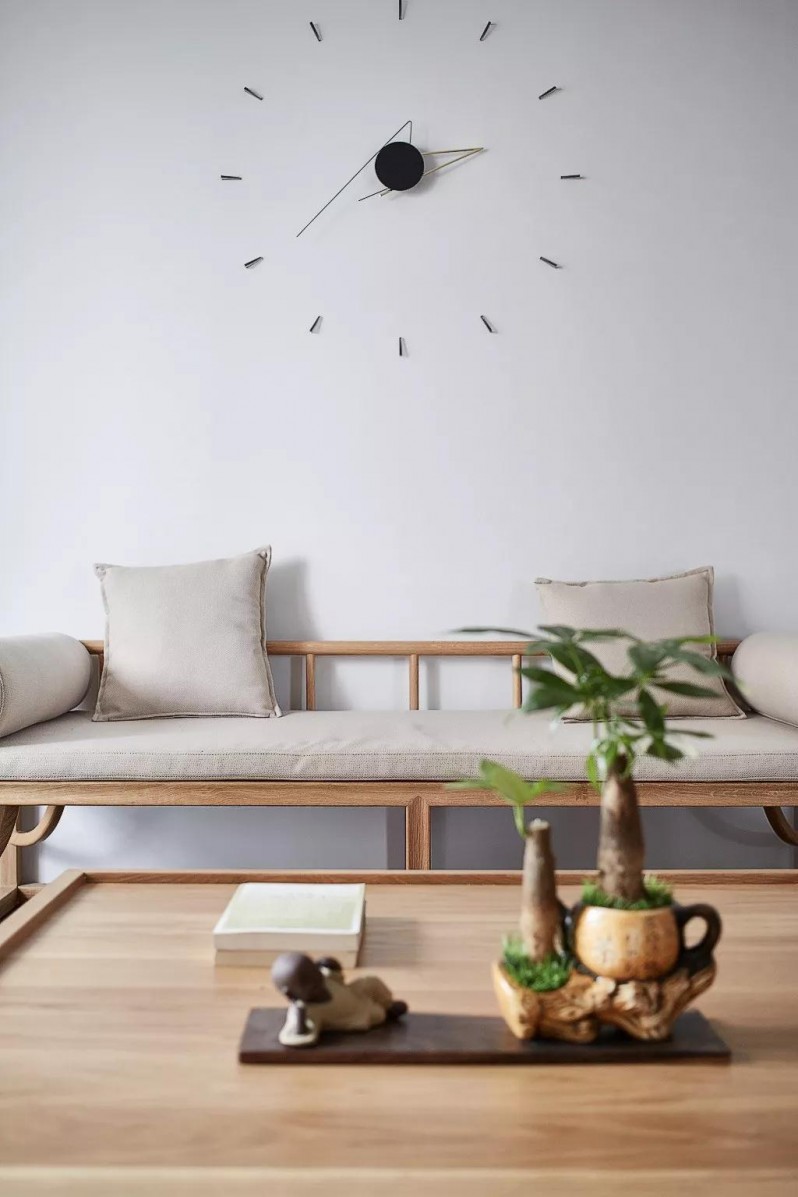 沙發(fā)背景墻為了不顯得單調(diào),還做了一個表來裝飾,簡約還不顯單調(diào)。搭配上同樣簡約的沙發(fā)和茶幾,顯得自然又純粹,帶有大自然的氣息,讓人想要親近。