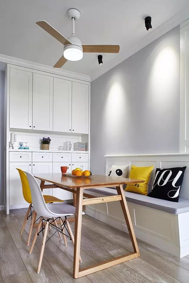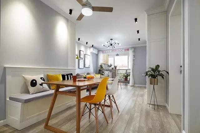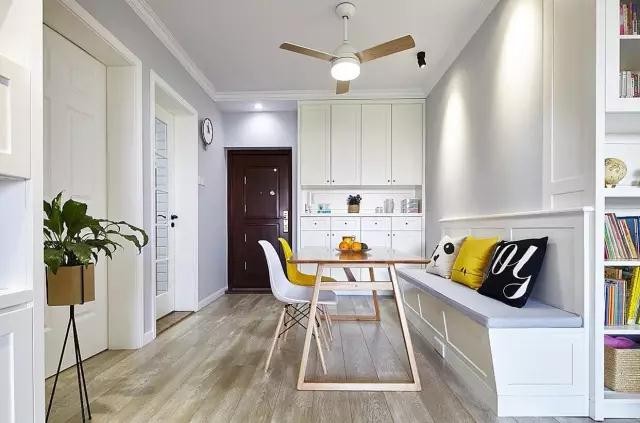 當(dāng)時(shí)選地板的時(shí)候,業(yè)主覺得復(fù)古的進(jìn)口復(fù)合地板給米白色家具增添一份朦朧的美,檸檬黃的餐椅和靠枕在清爽的空間里增加視覺的跳躍與溫馨。房子的整個(gè)空間都是干干凈凈的,來盆綠蘿做裝飾吧。