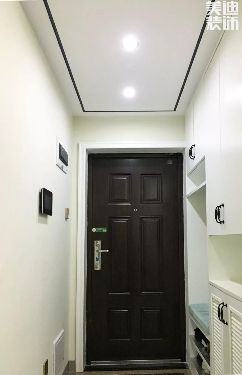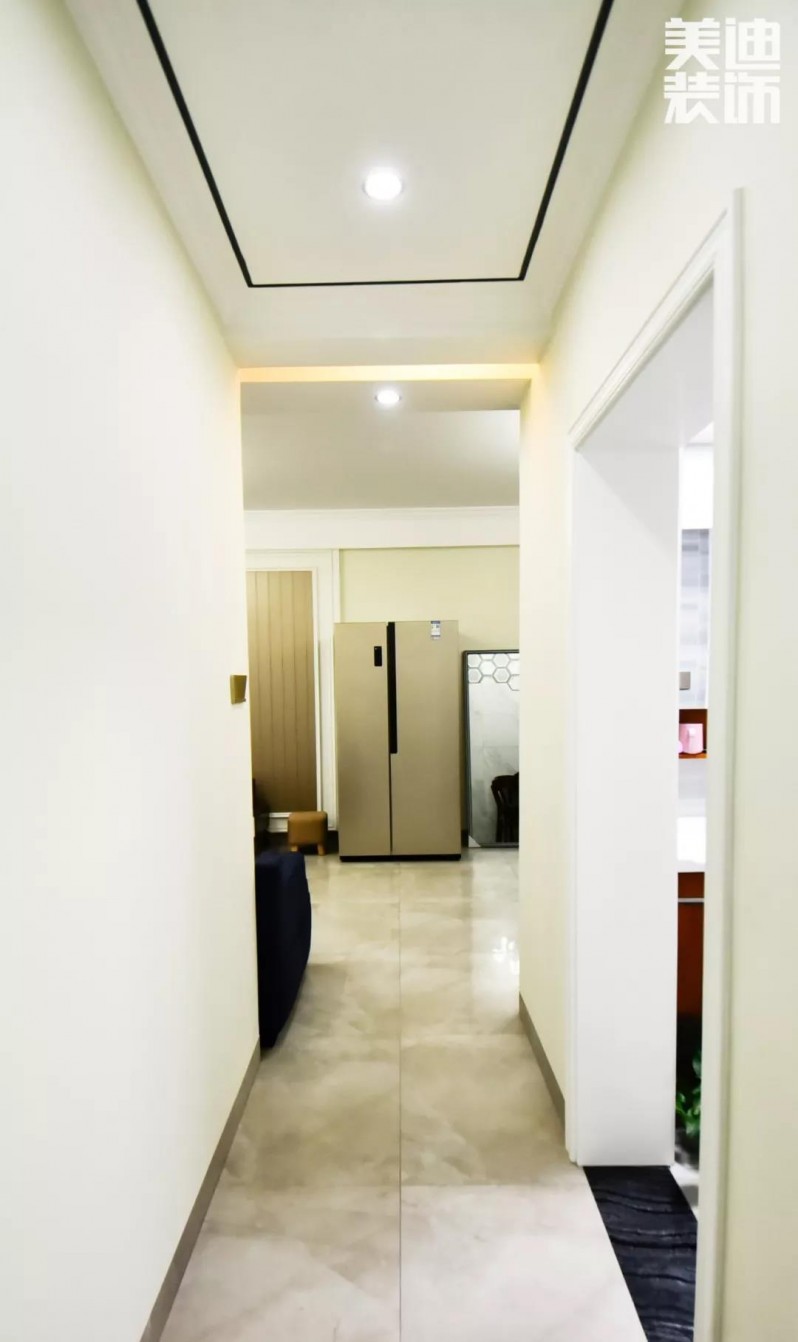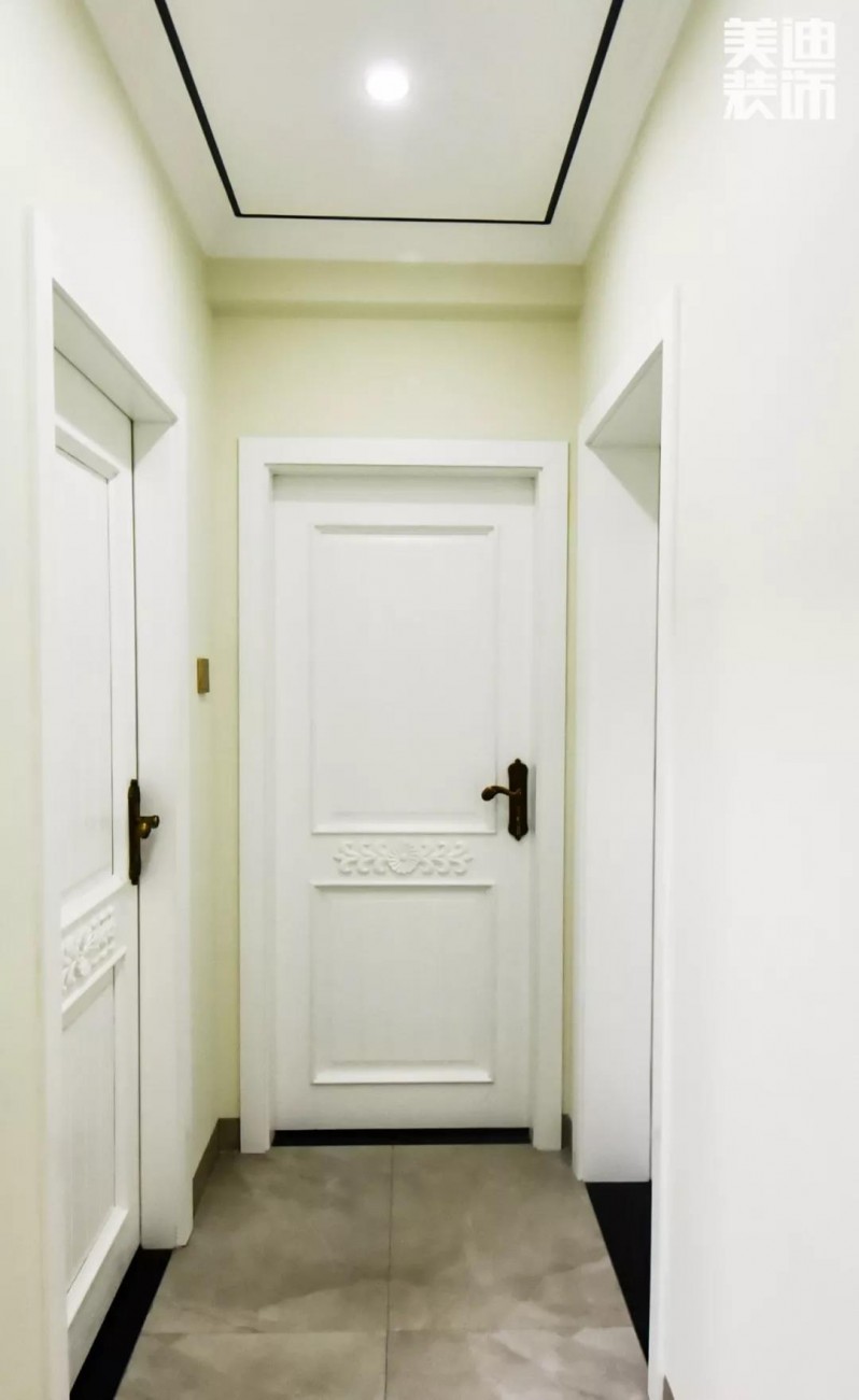 過道以簡潔為主,頂部加上一圈黑色裝飾線,讓空間變得更富有層次感。