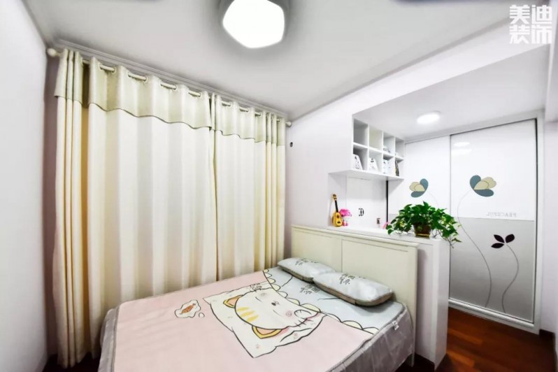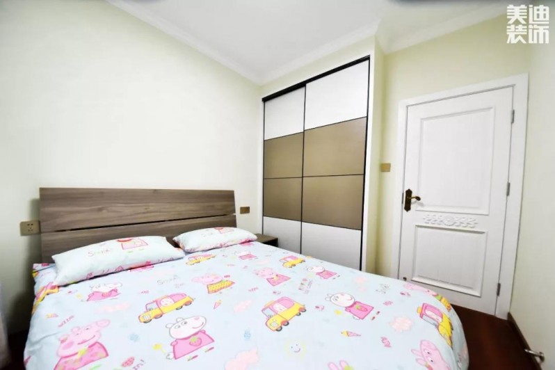 小女兒大部分時間是和爸媽或者姐姐一起睡,所以整體配飾都比較簡單。湯欽老師說,雖然孩子還小但是該有的私人空間還是給她準備好了。