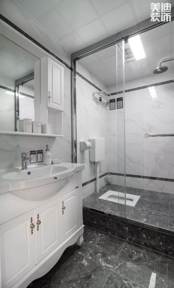 浴室雖說面積不是太大,但干濕分離一定要做。我們可以考慮借助浴簾亦或者淋雨門來達到我們干濕分離的效果,這樣也不會太過占據(jù)浴室的空間。