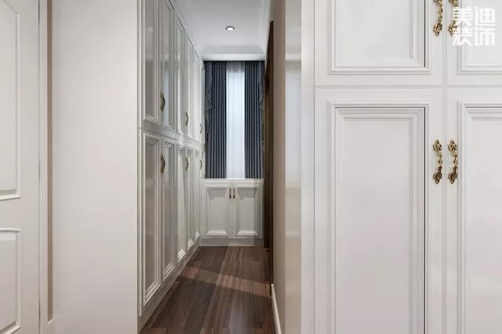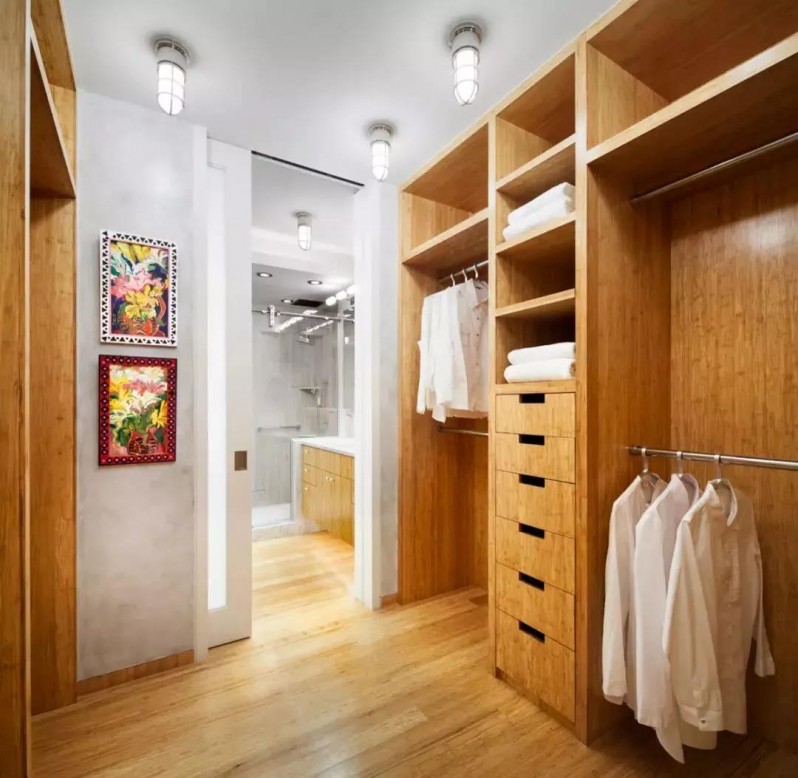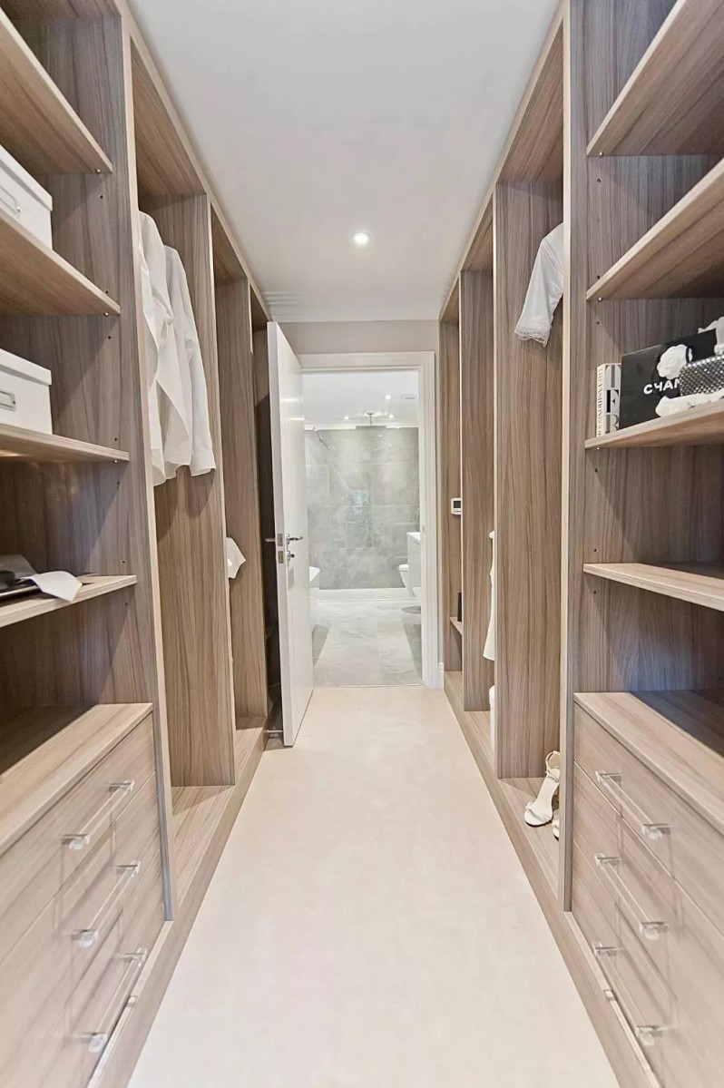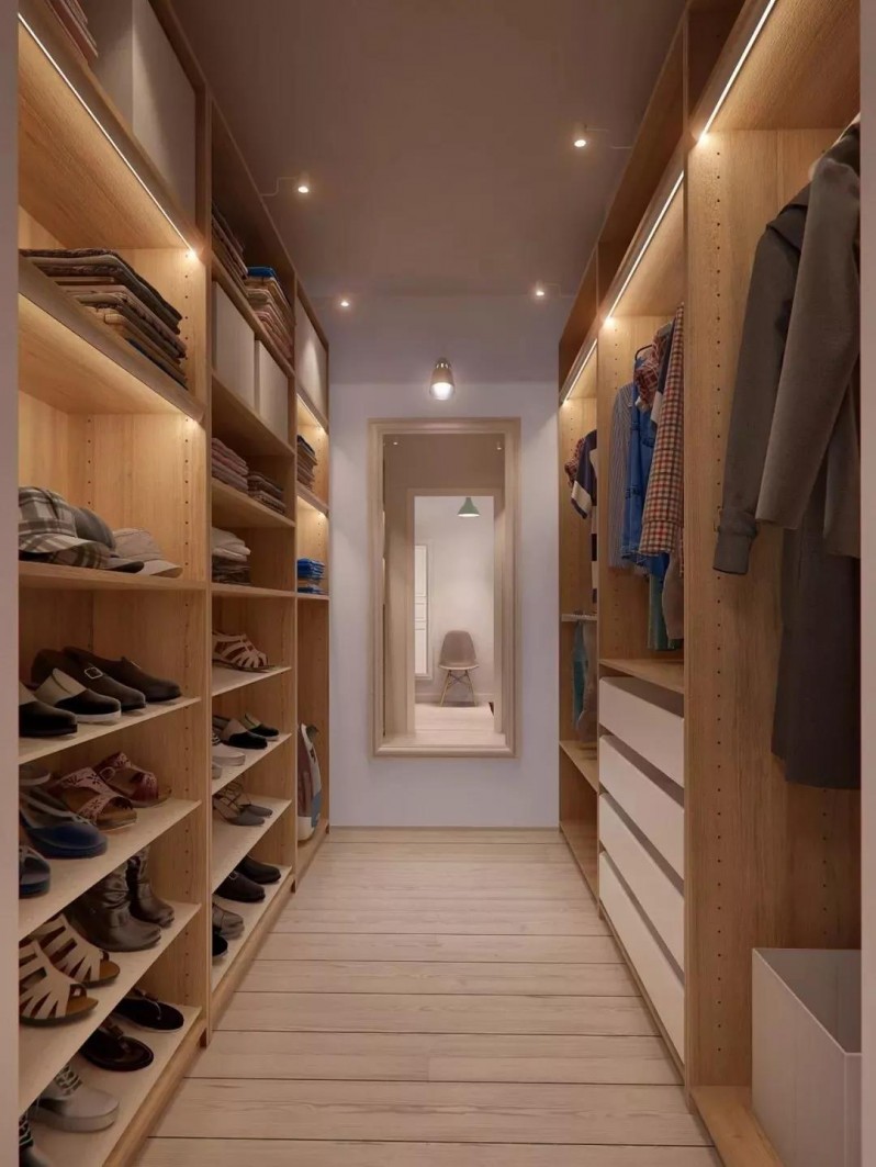 臥室進(jìn)門位置或臥室與主衛(wèi)之間的通道都是可以利用的,將它設(shè)計(jì)成通道式的衣帽間,雖然緊湊但也要實(shí)用不少。