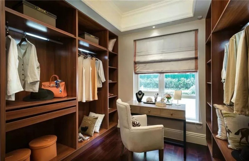 在衣帽間里架設(shè)一個(gè)梳妝臺,能為女主人提供一個(gè)更加貼心的梳妝空間,平時(shí)穿衣打扮都更加溫馨輕松。