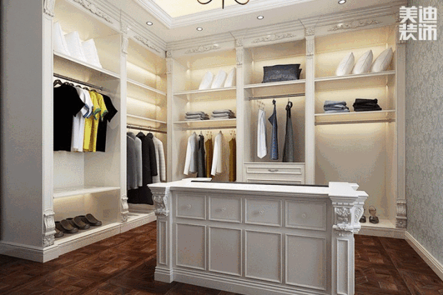 為方便更換衣服的方便,還可以在衣帽間中間擺一個(gè)凳子。
