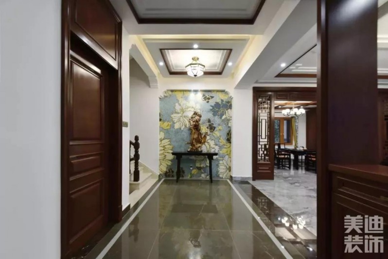 玄關(guān)空間大,吊頂也不能馬虎,富有儀式感的玄關(guān),墻上的花開(kāi)富貴圖象征著主人生活美滿(mǎn)幸福,彰顯高雅風(fēng)范。