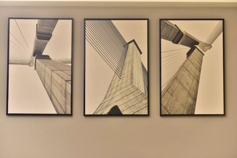 客廳藝術(shù)掛畫是設(shè)計師為業(yè)主精心挑選的,建筑的灰白調(diào),以及層次分明的線條感,極大程度上提升了整個空間的格調(diào)。
