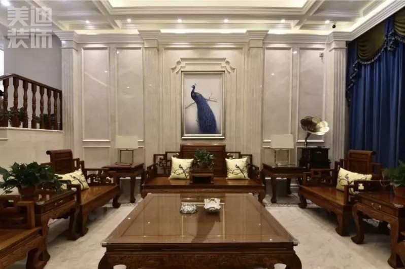 設(shè)計(jì)師以經(jīng)典的歐式線條勾勒出富有層次感的造型輪廓,軟裝上,男主有一套純老式的明清紅木家具,設(shè)計(jì)師再通過搭配富有異國風(fēng)情的留聲機(jī)及壁畫,巧妙地將中式的沉穩(wěn)大氣與西方的隨性自由相結(jié)合,既時(shí)尚又舒適。