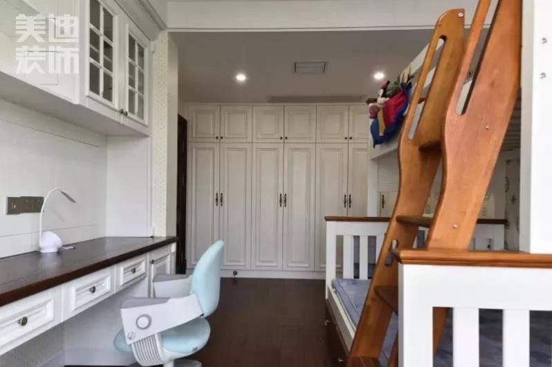 兒童房的設(shè)計(jì)業(yè)主要求簡單方便,交錯(cuò)式的床利于兩兄弟增進(jìn)感情,又有自己的隱私空間。寬敞的雙人學(xué)習(xí)書桌柜和儲(chǔ)量足夠大的吊柜,讓孩子體驗(yàn)輕松舒適的學(xué)習(xí)環(huán)境。
