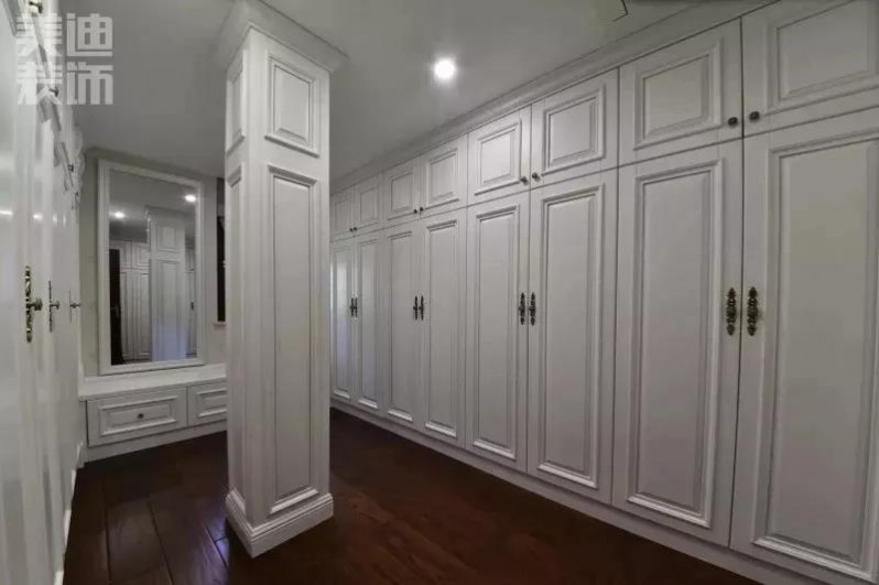 根據(jù)業(yè)主的需求,設(shè)計(jì)師設(shè)計(jì)了獨(dú)立式的衣帽間,滿足了愛美的女主人需要大量衣柜的儲(chǔ)物要求,壁柜的設(shè)計(jì)更具有實(shí)用性,防塵、容納空間更大。