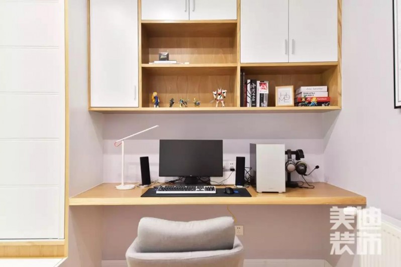書房區(qū)域是專為男主人打造的,下班后在這里玩游戲或者處理工作都非常方便。
