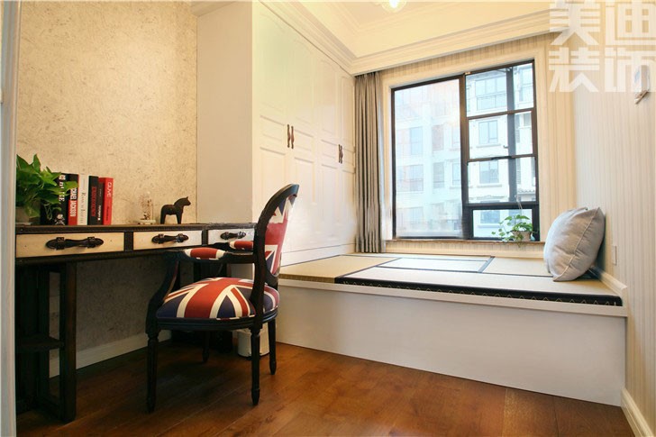 想要書房卻又愁著家里空間不夠的,如果正好臥室有個陽臺,而且陽臺還能封起來的話,那么這個位置可能就是最好不過的書房空間了,臨窗的書房,舒服明亮。