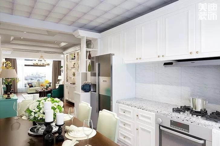 其實開放式廚房更適合做西餐。如果你家里的成員較多,每天需要煎炒烹炸的家庭,還是建議使用封閉式廚房;如果感覺廚房采光不好,可以采用玻璃隔斷形式,既美觀又好用。