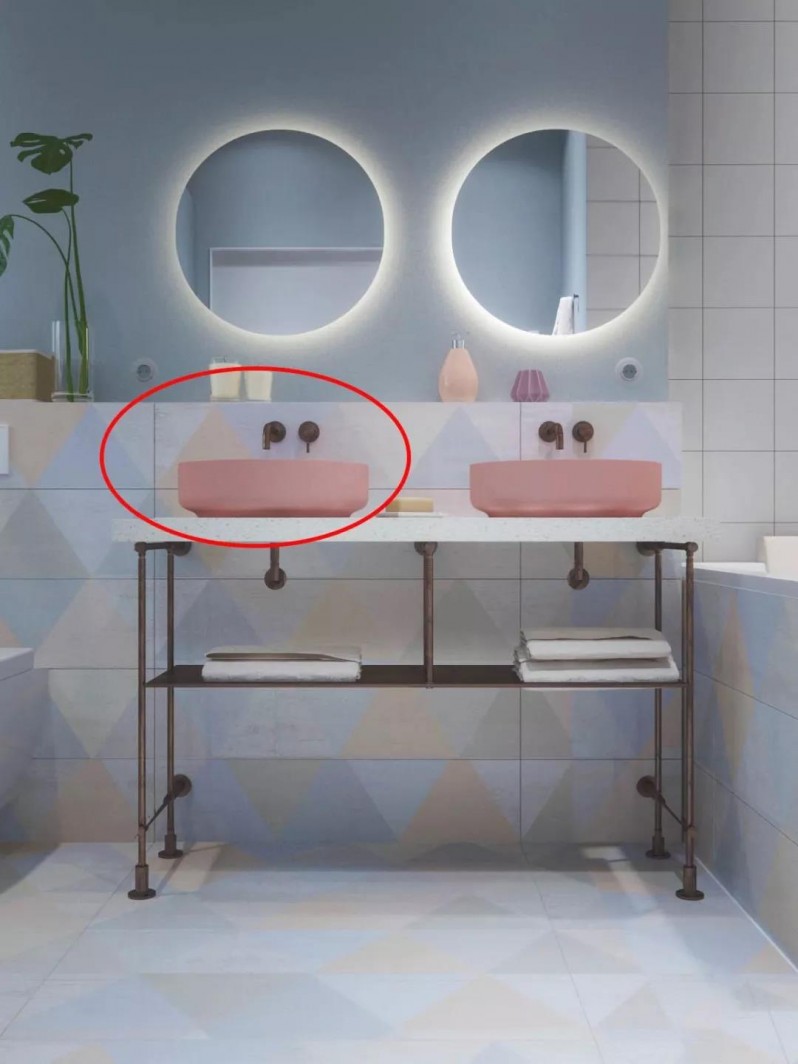 臺上盆雖然好看但會造成衛(wèi)生死角,如果有兩個衛(wèi)生間,次衛(wèi)建議用嵌入式洗面盆或立柱盆,造型簡潔,還容易打理。