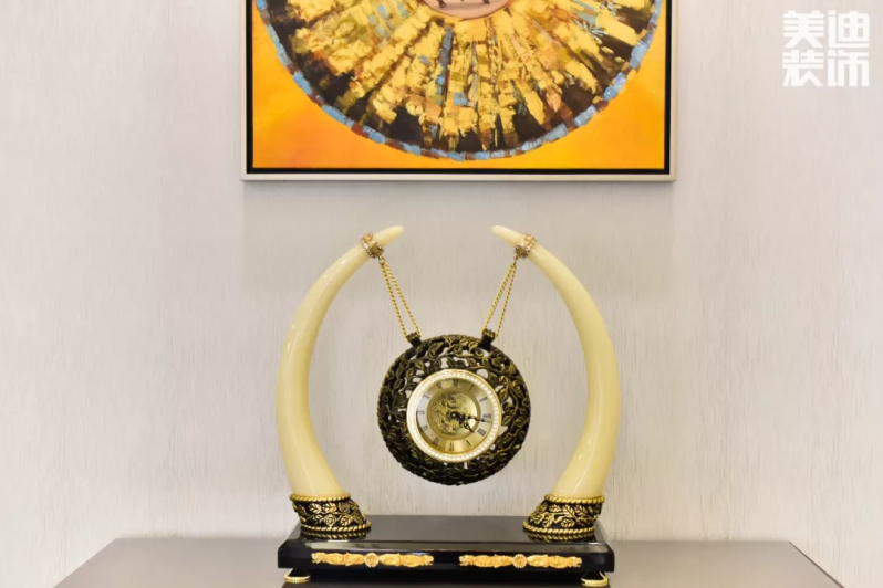 顏值很高的玄關(guān)設(shè)計(jì),復(fù)古的掛鐘、創(chuàng)意圖案的油畫都特別吸睛。